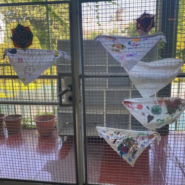 -Cada sala intervino pañuelos blancos con distintos materiales y técnicas, que luego colgamos en un espacio común del Jardín, formando una instalación colectiva.